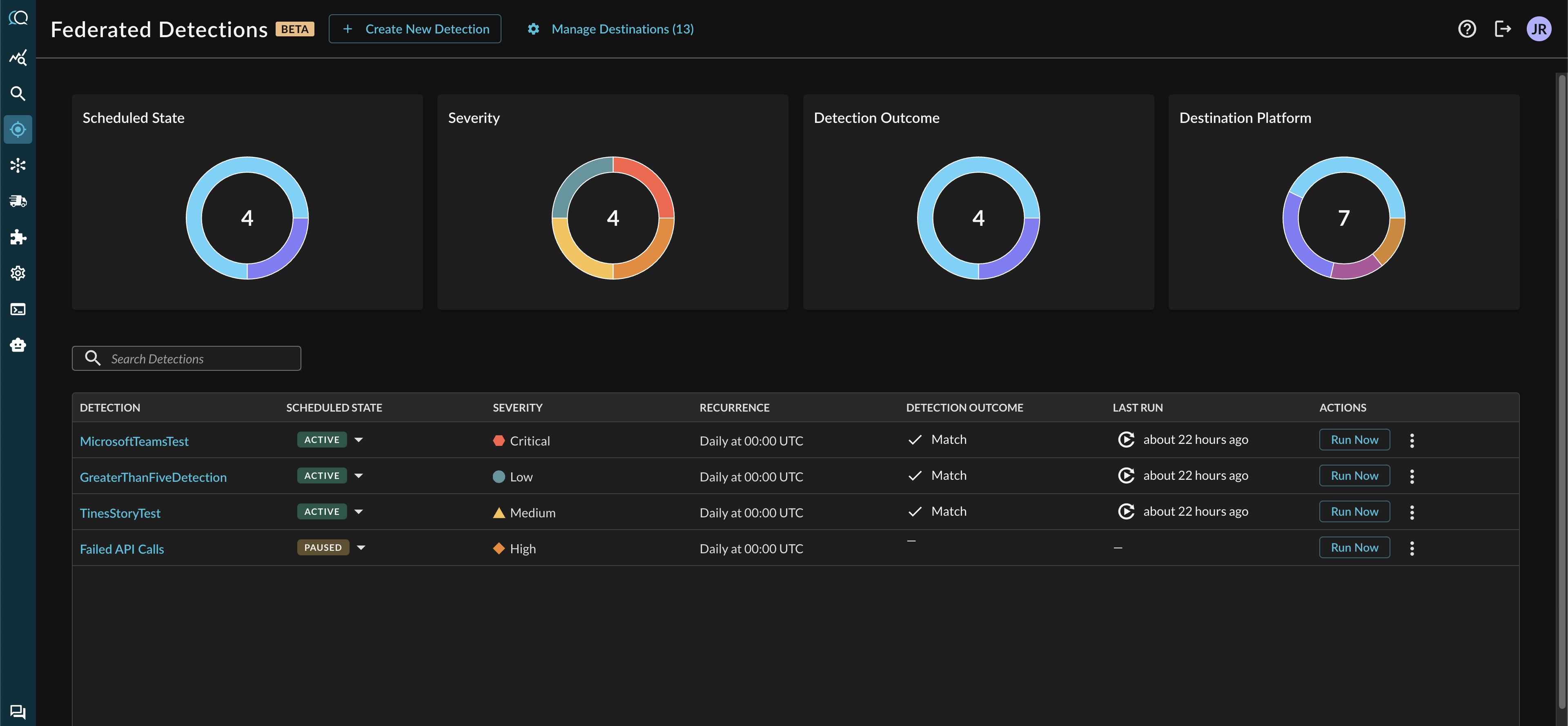 Federated Detections integrate with your existing security workflow through multiple destination types:
