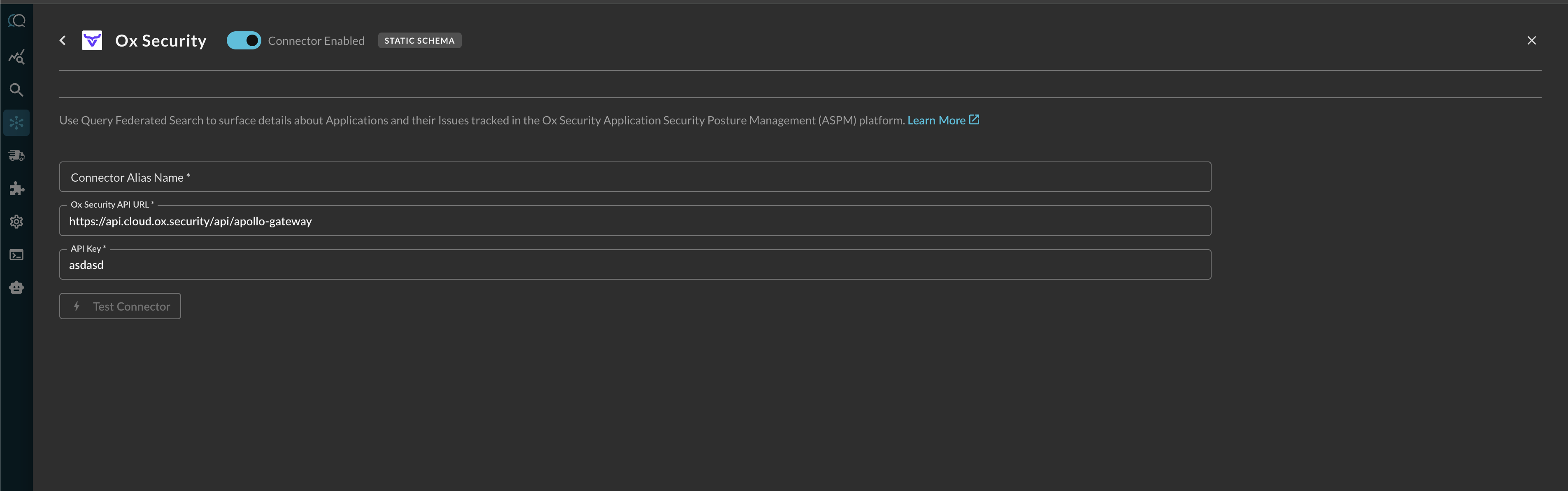 Use the following steps to create a new Query Federated Search Connector for Ox Security.
